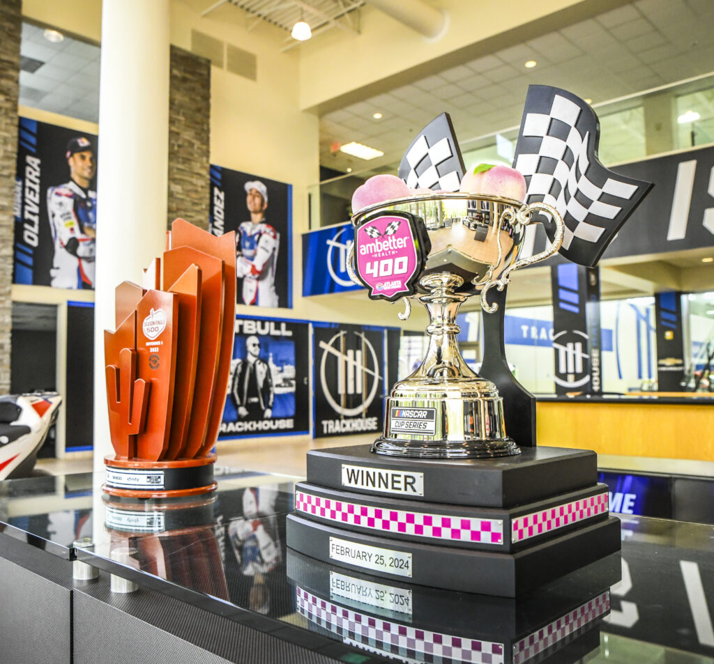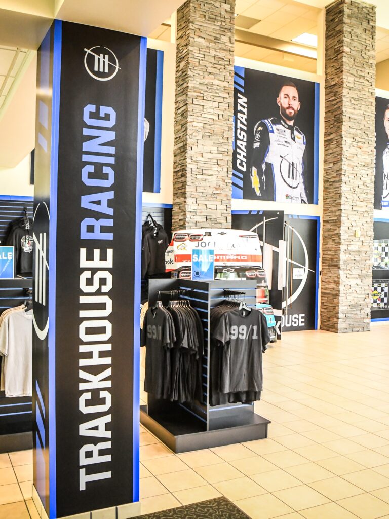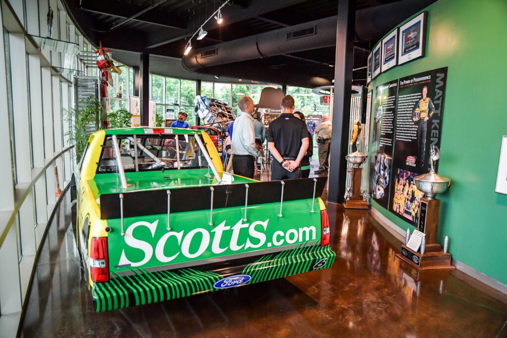 Pops of green throughout the showroom at Roush Fenway Keselowski Racing will grab your attention if the 100-seat theatre and racing simulator don’t capture it first. From brightly-hued paint schemes to multi-colored confetti sealed to championship cars with champagne, these race cars are on display for good reason. Combined with storied fire suits, embellished trophies and the energy inside them, NASCAR Race Shops are a sight worth seeing during any season.